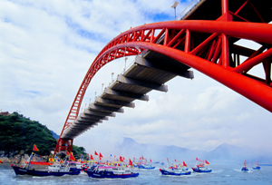 每逢开渔节,象山渔民整装出海,极其壮观。余新奇/摄 |