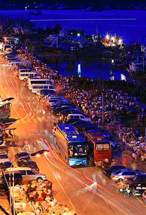 一年一度的开渔节来临了,夜晚,数以千计的黄鱼灯、鳌灯、带鱼灯、虾灯和蟹灯次第点亮,将十里石浦港湾映照得如同白昼,一派洋洋喜气。出海之前挂鱼灯,在象山有4000多年的历史了,人们用鱼灯以招引鱼群,祈平风浪,如今大红鱼灯已是开渔节的一个重要象征,“一盏红灯照碧海,笑迎八方嘉宾来”。