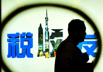 一名行人从上海街头的税收广告牌旁走过。新华社发(井韦