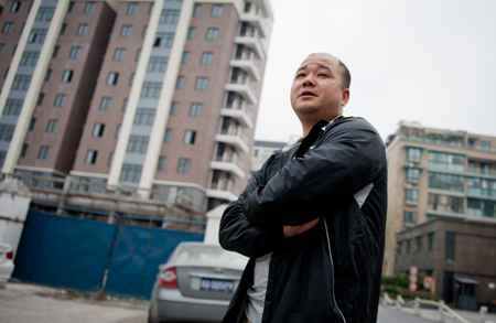 记者9日从杭州市余杭区法院了解到,杭州金星房地产开发有限公司已于日前向余杭区法院申请破产,各项工作正在开展过程中。金星房产开发的“西城时代家园”项目,因为资金问题,2011年底第一批交房推迟,现在项目已经停工,2012年的两批交房很可能因此推迟,涉及业主数百户。 图为4月9日,承包商章某在得知消息后来到杭州金星房地产开发有限公司开发的“西城时代家园”打探情况。他所在的公司为“西城时代家园”提供了上百扇防盗门,涉及金额20余万元。