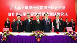 在挂牌仪式上,中国证监会副主席姚刚与北京市常务副市长李士祥、天津市常务副市长崔津渡、上海市副市长屠光绍和湖北省副省长赵斌分别签署合作备忘录,来自北京中关村、天津滨海、上海张江和武汉东湖四家高新技术园区的8家公司负责人为挂牌交易共同敲钟。