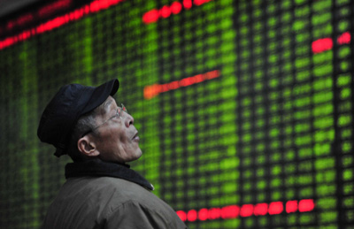 图为当日股民在江西九江市内一家证券公司营业部关注股市行情。