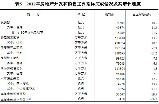 全年房地产开发投资71804亿元,比上年增长16.2%。其中,住宅投资49374亿元,增长11.4%;办公楼投资3367亿元,增长31.6%;商业营业用房投资9312亿元,增长25.4%。