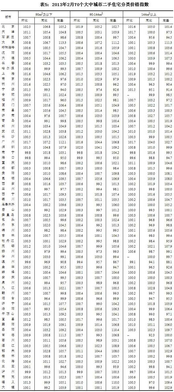 3、调查方法。70个大中城市的新建住宅销售价格、面积、金额等资料直接采用当地房地产管理部门的网签数据。二手住宅销售价格调查为非全面调查,采用重点调查和典型调查相结合的方法,按照房地产经纪机构上报、房地产管理部门提供与调查员实地采价相结合的方式收集基础数据。
