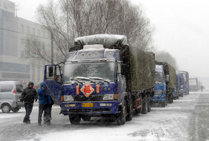 去冬今春以来,黑龙江省雪大路滑,道路不好走。双兴村子里面的路是土路,去往镇里的公路虽然是水泥路,但非常窄,两台大车很难错开。连续的降雪还使路面非常光滑,运粮车在有不少积雪的车辙中缓慢移动。