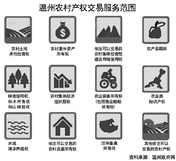 浙江省温州市近日发布的《温州市农村产权交易管理暂行办法》规定,自10月1日起,包括农村土地承包经营权、农村房屋所有权、农村集体经营性建设用地使用权等12类农村产权将在农村产权服务机构进行交易。值得一提的是,非城镇户口人员可以在县域内参与农房买卖。