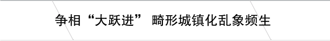 | 相对于中央强调新型城镇化要以“人的城镇化”为核心,不少地方仍旧陷入“重物轻人”的误区,城镇化“大跃进”中暴露出诸多问题。记者从多地调研了解到,很多地方借着城镇化的名义“圈地造城”,急于求成地改变城市面貌,结果演变成单纯的争项目、上工程,一些房地产开发商也大举涌入中小城市占地,地方债务风险和中小城市房地产泡沫问题令人担忧。 | |