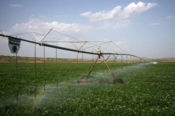 图为榆林现代农业园区马铃薯标准化生产基地的大型喷灌机正在作业。