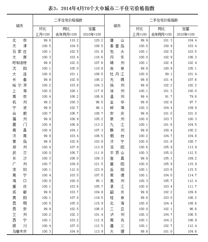 3、调查方法。70个大中城市的新建住宅销售价格、面积、金额等资料直接采用当地房地产管理部门的网签数据。二手住宅销售价格调查为非全面调查,采用重点调查和典型调查相结合的方法,按照房地产经纪机构上报、房地产管理部门提供与调查员实地采价相结合的方式收集基础数据。