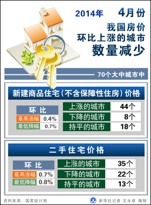 对于现阶段楼市,张旭告诉《经济参考报》记者,2014年4月,全国70个大中城市房价进入下行周期趋势愈加明显。从今年房地产下行趋势确立以来,降价城市数量不断增长,原本属于需求恢复期的4月,全国70个大中城市房价下调却出现大幅度升级。