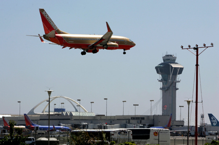 美国联邦航空局28日表示,美国西南航空公司不按规定维修波音737客机,需为此支付1200万美元罚款。 美国联邦航空局说,自2006年开始西南航空公司对44架波音737客机进行维修,以解决潜在的铝制外壳开裂隐患。但该公司与其维修项目承包商并未按照联邦航空局下达的相关安全规定进行维修。 图为一架美国西南航空公司的客机在洛杉矶国际机场准备着陆。
