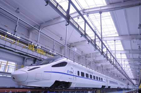 中共中央总书记、国家主席、中央军委主席、中央财经领导小组组长习近平11月4日上午主持召开中央财经领导小组第八次会议,研究丝绸之路经济带和21世纪海上丝绸之路规划、发起建立亚洲基础设施投资银行和设立丝路基金。 图为被誉为“钢铁丝绸之路”的兰新高铁青海段上的动车组。