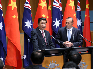 17日,中国国家主席习近平与澳大利亚总理阿博特在澳大利亚首都堪培拉举行会谈,双方共同确认实质性结束中澳自由贸易协定谈判。会晤后,在两国领导人见证下,中国商务部部长高虎城和澳大利亚贸易与投资部长安德鲁·罗布,分别代表两国政府签署了实质性结束中澳自由贸易协定谈判的意向声明。