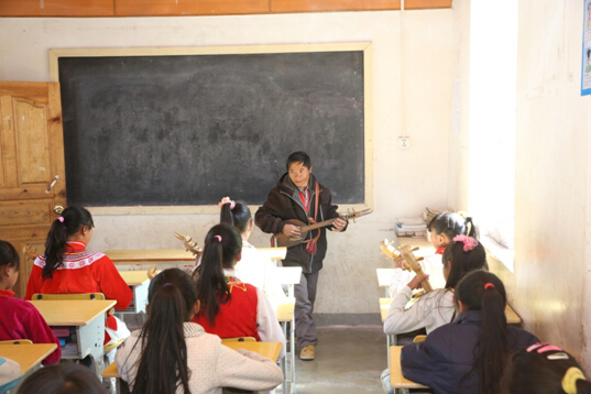 “我是想告诉孩子们让他们要学会坚强,现在他们大多都是心里高兴时弹一弹,但将来他们就知道了,以后的生活中会有很多的痛苦和不容易,那时她们弹起四弦琴会有一些不同的感受”,和盛伟坐在椅子上,粗糙的手里夹着刚点燃的香烟,看着在屋里嬉笑的孩子们若有所思地说。
