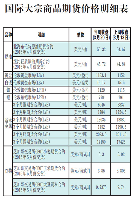 国际大宗商品期货价格明细表[2015-3-23]