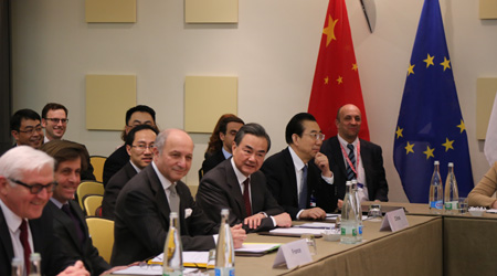当地时间3月29日,在瑞士洛桑,中国外交部长王毅(中)出席伊核问题外长会。 伊核问题六国(美、英、法、俄、中、德)与伊朗就核问题的新一轮外长会29日晚在瑞士洛桑举行。这也是去年11月伊核谈判决定延期以来举行的首场伊核问题外长会。国际原油市场密切关注本轮谈判,如果得以在约定的截止日期达成框架协议,伊核问题将形成突破,国际油价将承受下行压力。不过,目前一些突出分歧对谈判进程构成障碍,虽有达成协议的机遇,但风险也很高。