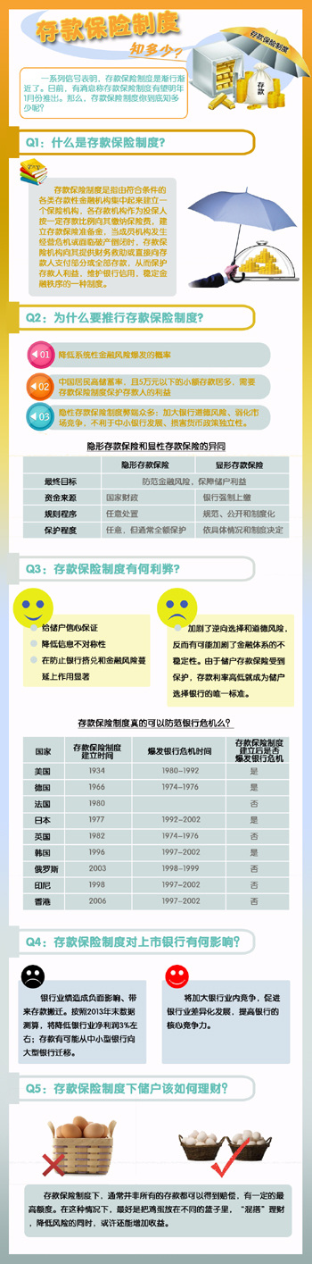 “存款保险制度推出以后,会激励商业银行加强风险管理,提高资本充足率和监管评级,以差别费率的方式约束商业银行过度扩张高风险业务,整体上有利于提升金融体系的稳健程度。但存款保险制度并非万能之策,对于银行业未来竞争中出现的一些负面因素,还需要出台相关的配套措施加以解决,包括加强行业自律,强化金融机构财务硬约束,健全金融机构市场退出机制等。”杨驰说。