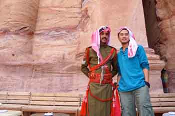 我在路边小摊上买下了一块具有阿拉伯风格的头巾,也被当地人拉着画上了烟熏装,我想,就让我做一天约旦人,去融入这玫瑰之城,去体味这千年的时光足印。