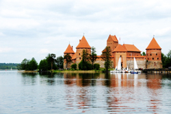 每到一个地方,我必先买些当地的明信片。一来寄给牵挂的人很浪漫,二来明信片上的风光一般都是必去之处。特拉凯便是这样。这个位于维尔纽斯城外20多公里处的一个精巧小镇,以加尔瓦湖心岛上的特拉凯城堡闻名。建造于1409年的特拉凯城堡,以粉红色砖砌成,伫立于湖中,远观真恍如进入童话,又不禁让人想起那句“宛在水中央”来。