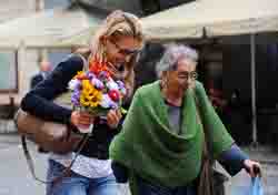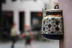 阳台上的鲜花是欧洲城市的生命,没想到走进维尔纽斯的老城区,第一个迎接我却是两朵假花——窄巷口,红瓦白墙的房檐下,两张绒布太阳花上的笑脸一样那么灿烂。