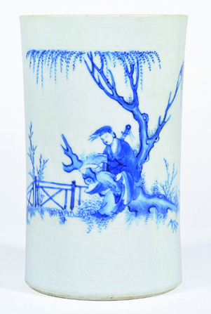 明崇祯 青花吕洞宾三度城南柳神仙人物纹笔筒 |