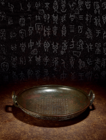 此次的西泠拍品中,分量最重的当属西周重器青铜兮甲盘。经王国维考证,兮甲盘的原主人为西周朝太师尹吉甫,他不仅是西周大政治家、大军事家,还是中国最早的诗歌总集《诗经》的采集者和编撰者,被称为“中华诗祖”。兮甲盘铭文133字,为国内拍场铭文字数最多之重器,所记时间、地点、人物、事件四要素齐备,史料价值极高,堪与《尚书》媲美。该铭文对于研究西周官制、战争、封赏、税赋、贸易管理等均具有重要意义。同时,兮甲盘金文书法也有着独特的风格。它的递藏绝无仅有:在宋朝浓厚的金石学氛围下,兮甲盘被收入南宋宫廷,南宋末年战乱流落民间,被元代官吏李顺甫发现,后李顺甫将盘赠予元代大鉴赏家鲜于枢,经数代名贤收藏传递,清初被收入清河保阳官府,直到清末辗转至大收藏家、鉴赏家、著名学者陈介祺之手。随后,兮甲盘不知下落,从此只能从陈介祺、吴大澂等人遗留的拓片上看到盘的图案和铭文。它的著录让人震撼:自宋代以来,历代学者藏家对它产生了极大的兴趣,目前可查著录至少达百次以上,如重要著录有宋代张抡《绍兴内府古器评》,元代鲜于枢《困学斋杂录》,元代陆友仁《研北杂志》,清代陈介祺《簠斋藏古册目并题记》,清代吴大澂《愙斋集古录》,近代容庚《商周彝器通考》等。