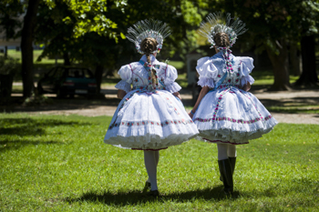 7月30日,在匈牙利包洛绍焦尔毛特,两名妇女身着传统服装参加保洛茨节活动。当日,纪念圣安娜的保洛茨节在包洛绍焦尔毛特举行。保洛茨人居住在匈牙利北部地区,是拥有自己传统和方言的一个匈牙利民族。新华社/欧新 |