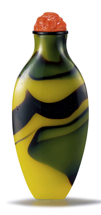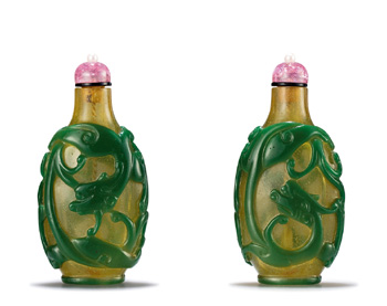 清 黄地套绿料螭龙纹鼻烟壶 |