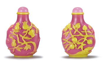 十八世纪 粉红料套黄福寿纹鼻烟壶 |