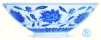 明宣德内模印外青花缠枝莲纹斗笠碗 |