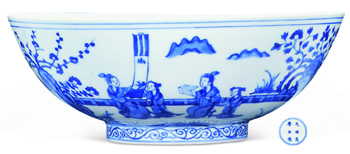 “百瓷集韵”则延续了此前的专场设置,挑选百件各具特色的瓷器精品,分8个专题呈现,即“意韵—明末清初瓷器”、“余韵—晚清御窑瓷器”、“气韵—康熙至道光御窑瓷器”、“明韵—明式瓷器”、“色韵—单色釉瓷器”、“古韵—古代瓷器”、“新韵—民国瓷器”以及“趣韵—仿生意趣瓷器”。其中,“清乾隆粉彩清装仕女婴戏图瓷板挂屏”凸显乾隆粉彩色调之华美,笔触细腻,将人物开脸、衣饰、山石、树木等细节描绘的栩栩如生,动态传神。另外,“明万历青花琴棋书画仕女图大碗”更是一件不可多得的明万历官窑瓷器,青花发色纯正,纹饰细腻,同时递藏可靠,颇为难得。