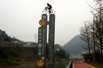 旅游公路的起点茅台镇是红军长征四渡赤水渡口之一。1935年1月至3月,红军长征经过遵义期间,巧妙地在如今的仁怀、习水、赤水及四川境内四渡赤水,甩开国民党重兵围困。沿赤水河而下的旅游公路,先后经习水隆兴镇淋滩、土城、赤水元厚等主要渡口。公路沿线还建有四渡赤水纪念馆(土城)、习水女红军纪念馆、土城青杠坡战斗遗址等红色景点。在土城街上,每一户人家都挂着一块牌子:1935年红军驻地。赤水河谷旅游公路共分两部分,一是公路主线,另一是自行车道、人行步道慢行系统。用红色沥青铺成的山地自行车道,旁边就是黑色沥青铺成的汽车道。到这里旅游可以开车、可以骑行、也可以走路,人车分离,既安全又惬意。公路主线全长约153公里,主线两边刺桐树形成天然树洞;自行车道、人行步道慢行系统全长约168公里,与赤水河相辅相成。赤水河谷旅游公路全线上的12个驿站,目前有500多辆自行车,整体来说车况都还不错,绿色的为山地车,后面蓝白相间的为休闲车。在任一驿站都能租赁到自行车,只需拿出手机用支付宝或者微信扫描自行车上的二维码,填写手机号机注册一个账号,注册成功后缴纳200元押金即可取走自行车,按小时收费,10元/小时。需要注意的是,每个人只能使用自己的账号租赁一辆自行车。不想骑了,可以随意在其中一个驿站把自行车还回去,非常人性化。驿站之中最有意思的为仁怀茅台、习水土城和赤水复兴的3个驿站,不可错过。它们沿着赤水河一路前行,先后经过仁怀市茅台四渡赤水纪念碑、 国酒博物馆、茅台古镇、美酒河;习水县二郎滩战斗遗址、四渡赤水纪念馆、千年土城古镇;赤水市赤水大瀑布、燕子岩、竹海等各大景区。