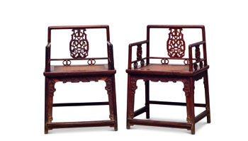 明黄花梨透雕靠背玫瑰椅成对 |