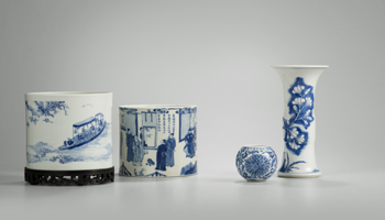 景德镇的明代御器厂在万历三十六年(1608年)正式辍烧,这意味着民窑可以完全摆脱皇权的各种钳制,进入了一个空前繁荣的辉煌时代。过去被御器厂垄断的优质原材料、先进技术与高级窑工,如今都转向民窑作坊,庞大的外销订单与繁荣的内销市场刺激了民窑作坊在规模与质量上的双飞跃。青花与五彩瓷是十七世纪的主流产品,景德镇此时制瓷的分工与流程也越来越细致、繁复、专业,产品品质自然也越来越高。许之衡在《饮流斋说瓷》中评价“硬彩、青花均以康熙为极轨。”传统的山水纹样始终是画匠与窑师们最爱的题材之一。得益于瓷胎与青花料的提纯技术的提高,青花瓷上的山水开始与传统的绘画技法风格融合,所谓纸绢上讲究墨分五色的水墨变化效果,也被应用在青花瓷器的发色浓淡层次变化上,并结合各种笔皴之法,使此时瓷器上的山水图成为了纯粹的绘画艺术。硬冷的瓷面上,如手卷般徐徐展开的山川河流、寒峰雅舍,或是华茂参天的古树,在王朝更迭、山河变色的大时代里,显得更加意味深长,高洁隽永。他们是道德礼乐的制定者,却也是离经叛道的破坏领袖;他们是精神境界的倡领者,却也是风花雪月的糜烂分子;他们是文化品位的创造者,却也是怀才不遇的落魄之徒。他们就是古代的文人士大夫。晚明以后,在国破家亡的历史转折里,大批从追求仕途中解放出来的文人名士,纷纷转向社会活动,他们的艺术才情开始向建筑、造园、工艺、版画、家具、制瓷等诸多工商业领域倾注延伸,他们结社交游、赏鉴古董、吟风弄月、怡情养生,将高雅脱俗的精神境界与日常生活相结合,从而形成了一套独特而完整的艺术生活体系,成为了整个社会的艺术、时尚、审美、品级的指南与指标。