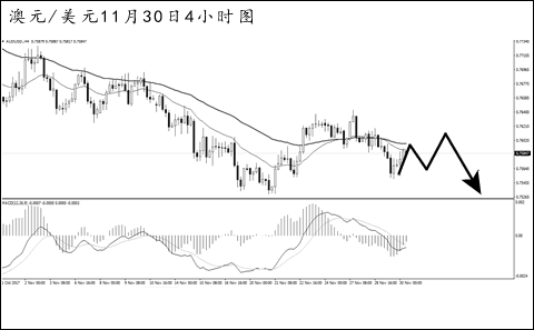 ▲澳元兑美元连续震荡回落。均线系统的压制位被升破后,价格没有加速上冲,目前重新挑战0.7530的低点,且再度跌破的概率较大。短线汇价的盘整节奏较为凌乱,预计澳元在此位置调整后有望先发起一波下行走势。