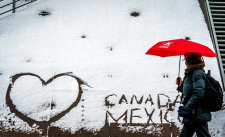 12月11日,在德国汉堡,一名女子撑伞走在雪后的路上。新华社/欧新