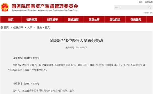 经研究,聘任王子民为中国中煤能源集团有限公司外部董事,聘期三年(自2017年12月至2020年11月);祁泽瑞不再担任中国中煤能源集团有限公司外部董事职务。