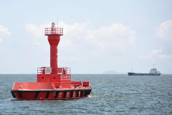 采用北斗航标遥测遥控装置的一艘大型灯船投放在珠江口担杆水道。