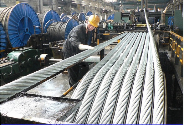 贵州钢绳镀锌钢丝绳生产现场。资料照片
