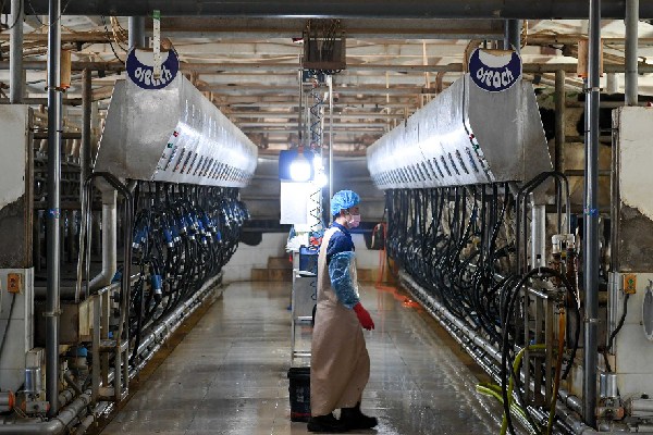 这是1月19日拍摄的巴彦淖尔市临河区东鑫奶牛养殖专业合作社挤奶车间。