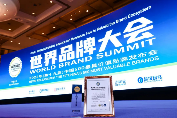 7月26日,2022年(第十九届)世界品牌大会暨中国500最具价值品牌发布会在北京隆重举行。国际权威品牌评审机构——世界品牌实验室(World Brand Lab)发布了2022年“中国500最具价值品牌”排行榜。