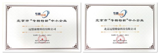 ▲ 专精特新证书-远盟康健集团(左)北京远盟健康(右)