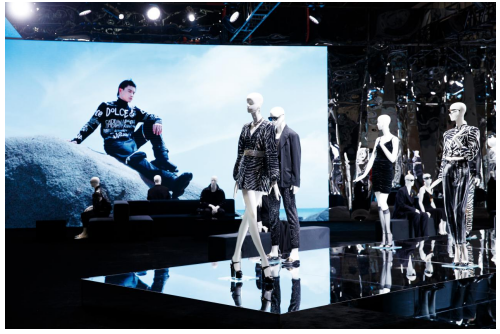 意大利高端时装品牌杜嘉班纳以都会为主题,展陈结合影像元素和虚实相间的镜面效果,让现场观众沉浸在年轻而摩登的体验中。