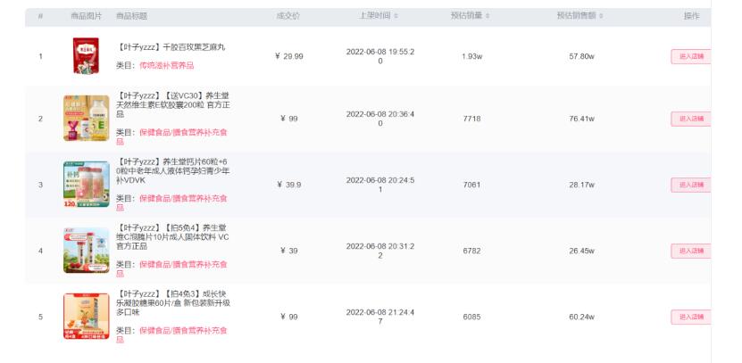 6月8日,蘑菇街主播“叶子yzzz”举办的保健养生专场直播单场GMV预估达528.24万,销量预估达10.04万。黑芝麻丸、维E胶囊、钙片、泡腾片等单品在叶子直播间热卖,其中,黑芝麻丸单品销量预估近2万单: