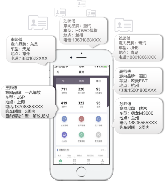 (图为满帮集团面向经销商推出的线索管理工具“满车宝”)