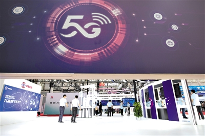 2022世界5G大会上,人们在中国信息通信科技集团有限公司展区交流。记者 张涛 摄