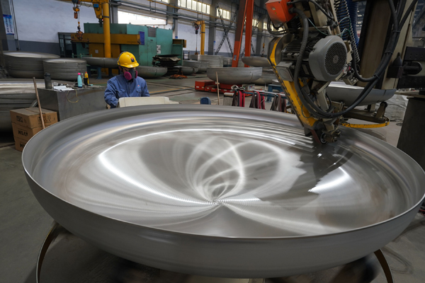 工人在位于兴仁镇的南通四方罐式储运设备制造有限公司标罐车间忙碌。