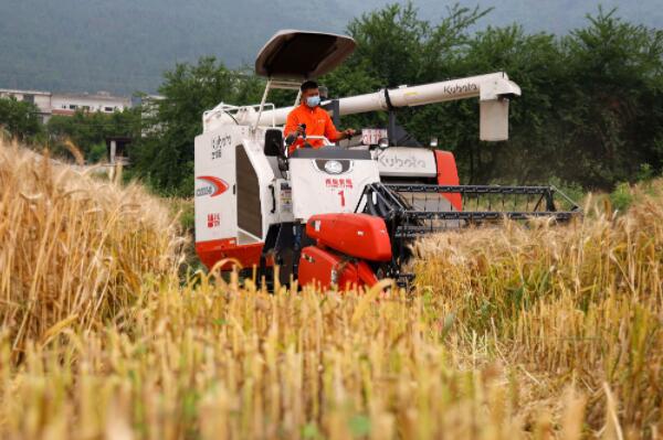 近日,贵州省遵义市正安县安场镇迎来小麦收获季,农民抢抓农时收获小麦,田间地头一派繁忙。
