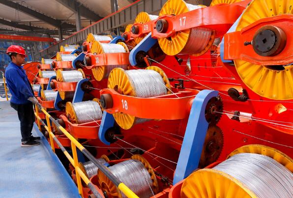 5月15日,在青岛汉缆股份有限公司海缆生产基地,工人在生产用于海上风力发电及石油平台等大型海洋工程建设设施的海缆产品。