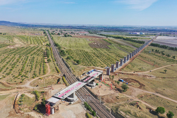 5月29日,集大原高铁跨京包铁路连续梁转体完成。